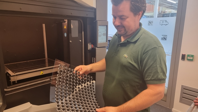 Eenmaal in het bezit van het digitale 3D-model, kunnen we met behulp van een 3D-printer snel prototypes produceren. Deze geavanceerde printers maken gebruik van het materiaal ASA, waardoor we prototypes kunnen maken die qua eigenschappen en functionaliteit sterk lijken op het uiteindelijke product. Dit is een kunststof vergelijkbaar met “ABS”, maar met het grote voordeel dat het zeer goed bestand is tegen UV licht. Dit stelt ons in staat om de prestaties van het ontwerp te testen, ergonomische aspecten te evalueren en mogelijke verbeteringen aan te brengen voordat we verdergaan met de productie.